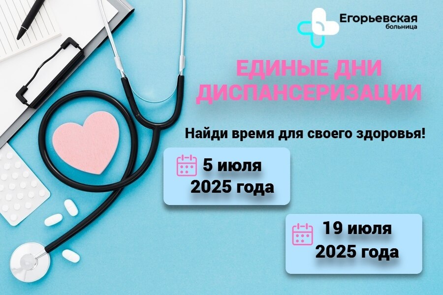 19 июля 2025 года ГБУЗ МО "Егорьевская больница" приглашает на Единые дни диспансеризации