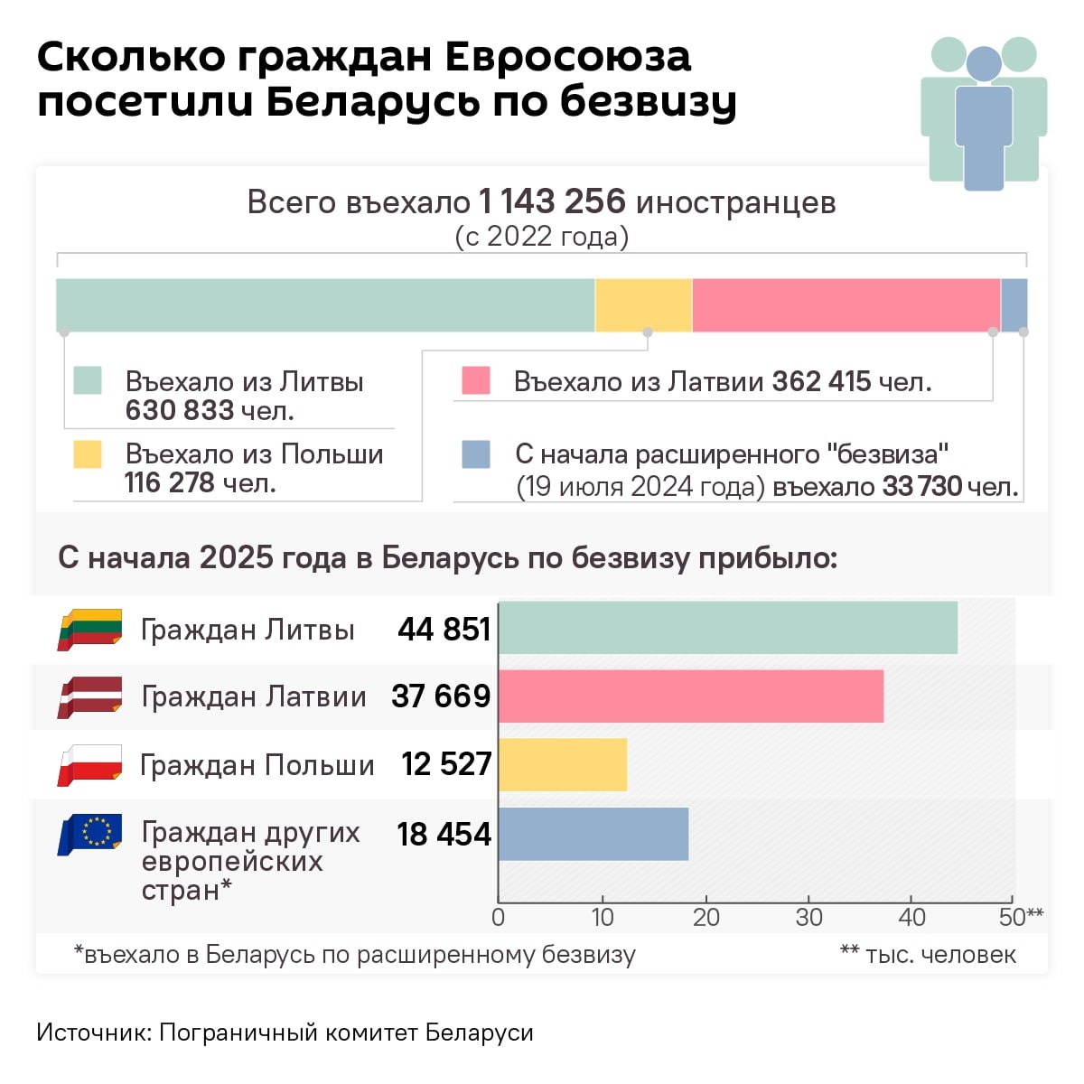 С начала года более 113 тысяч иностранцев посетили Беларусь по безвизу — ГПК Большинство путешественников приехало из стран-соседей Беларуси — Литвы, Латвии и Польши. Всего с 15 апреля 2022 года нашу страну посетили 1 143 256 жителей Европы. Более половины из них — жители Литвы. @SPUTNIKBY