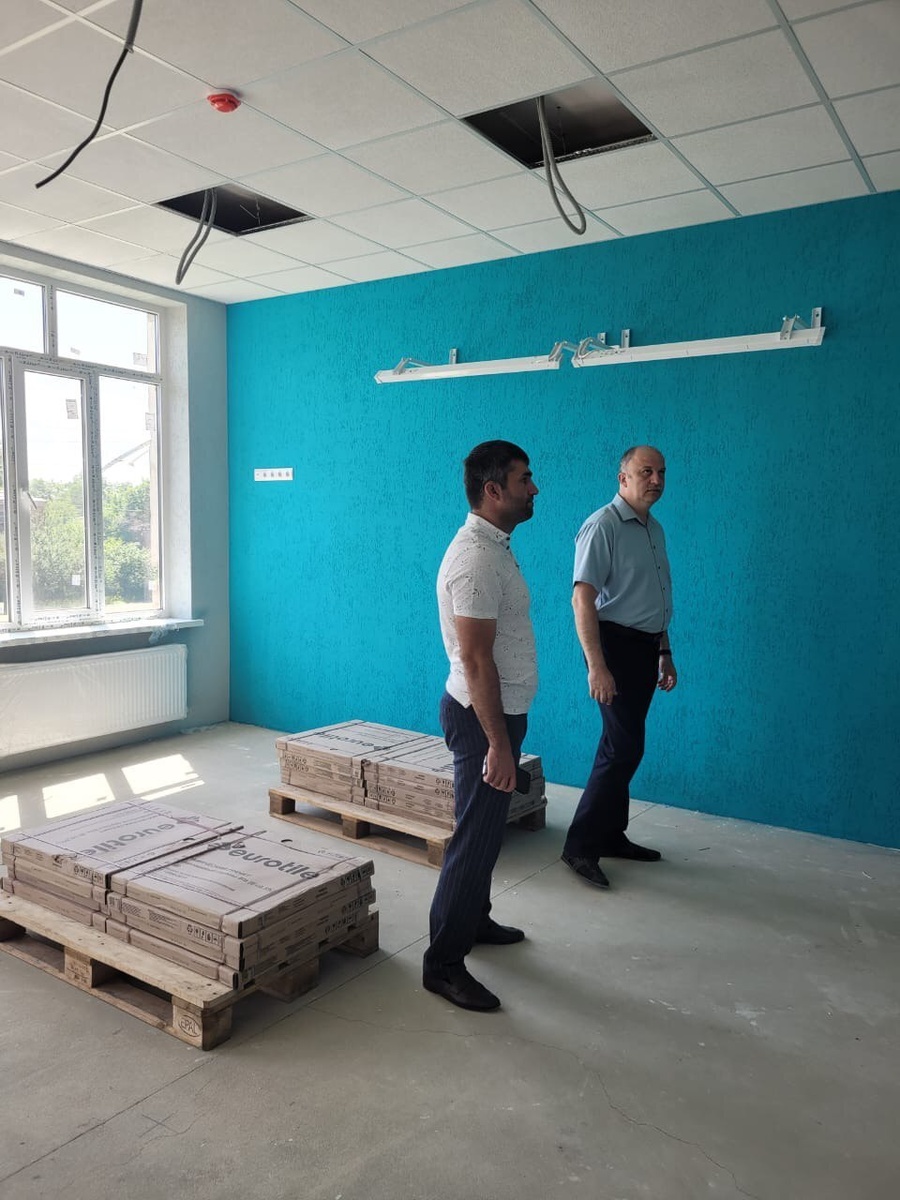 В общеобразовательных учреждениях Гиагинского района продолжаются капитальные ремонты. Работы в МБОУ СОШ № 6 ведутся в рамках национального проекта "Молодежь и дети" региональный проект "Всё лучшее детям", реализуемого благодаря Президенту РФ В.В. Путину. Глава МО «Гиагинский район» Андрей Таранухин и начальник Управления образования МО "Гиагинский район" Анна Ковалевская проверили реализацию нацпроекта, встретились с подрядчиком и обсудили ход работ. На сегодняшний день в учебных кабинетах и коридорах 2 этажа покрашены стены, в пищеблоке проведена облицовка стен плиткой. Ведутся работы по оштукатуриванию стен фасада здания. На 1 этаже проводятся работы по грунтовке и покраске стен, укладке плитки на стены, демонтажу кровли на спортзале и установке обрешетки на спортзале.