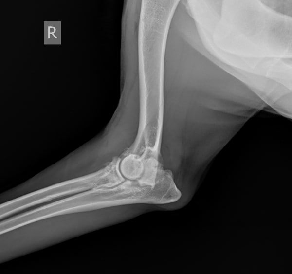 Вот так выглядит артроз локтевого сустава - правый сустав, левый сустав в порядке