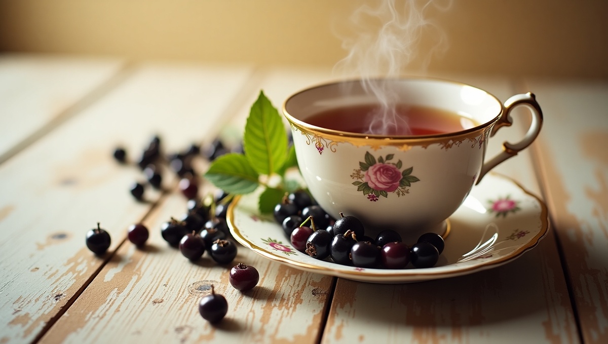 Чай с ягодами черной смородины – Заваривается из сушеных или свежих ягод и обладает ярким фруктовым вкусом.