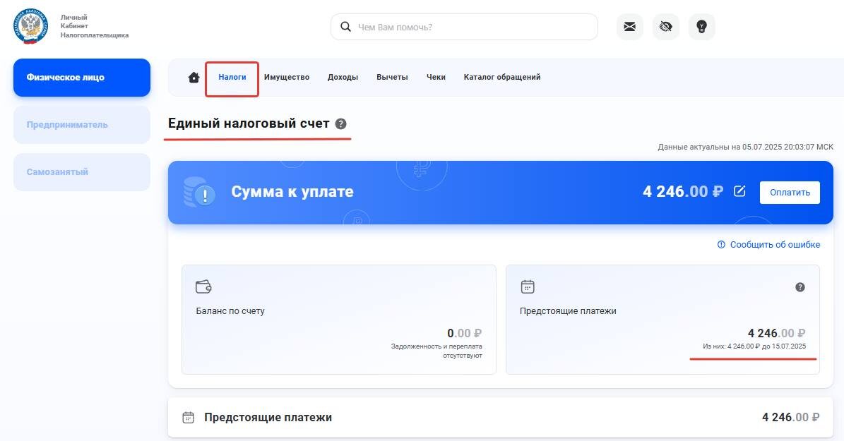 🔼Больше подробностей про налог к уплате можно найти в личном кабинете в разделе "Налоги".