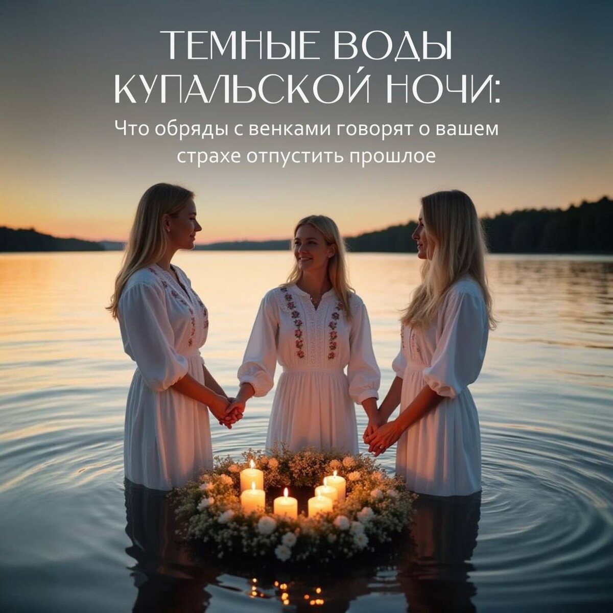 🌱 Темные воды Купальской ночи: что обряды с венками говорят о вашем страхе отпустить прошлое ⏺ В ночь на Ивана Купалу девушки плели венки из трав и цветов, а затем пускали их по воде или бросали в костер. Этот ритуал символизировал прощание со старым, надежду на новое и связь с природными циклами. Но почему для многих отпустить венок было так страшно? ⏺Страх утраты контроля. Венок, уносимый течением, — метафора непредсказуемости жизни. Как и прошлое, его нельзя вернуть, а будущее невозможно предугадать. ⏺Травмы прошлого. В легендах русалки (утопленницы) цеплялись за берег, словно люди за болезненные воспоминания. Например, в повести о Марине героиня встретила русалку, чья песня рассказывала о «девичьем горе» — неотпущенной боли. ⏺Иллюзия безопасности. Девушки вплетали в венки полынь как оберег. Так и мы «защищаем» старые привычки, даже если они разрушительны. «Когда ты всю себя отдала любимому, а он предал — нету большего горя», — плакали русалки в купальскую ночь. Купальские об