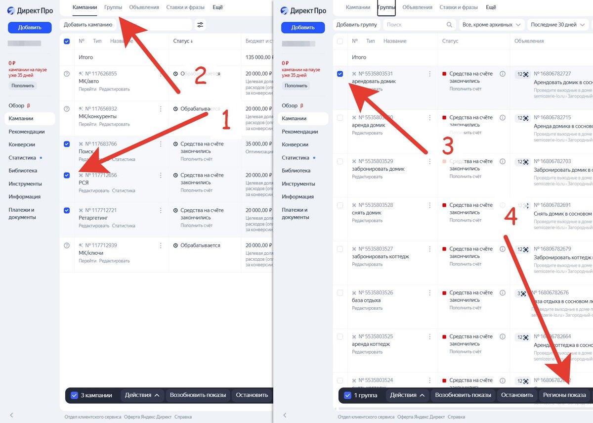 4) внизу Регионы показа –> Указать на карте О настройке Яндекс Директ пишу в своём Telegram канале.