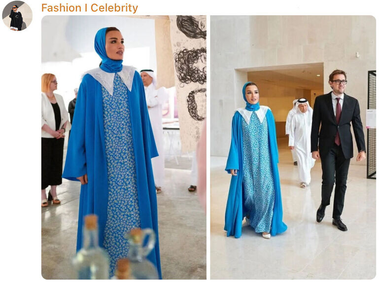 Красавица Шейха Моза, вторая из трех жен бывшего эмира Катара шейха Хамада бен Калифа-аль-Тани и мать нынешнего правителя, вновь заставила говорить о себе весь мир. Потому что вновь выбрала наряд от российского дизайнера Ulyana Sergeenko. Супруга политика прибыла на выставку Art and Design Now, чтобы посмотреть работы студентов VCUarts Qatar (филиала Университета Вирджинии, США). На ней было шелковое платье в цветочек цвета неба, легкая абайя (традиционное арабское платье с рукавами для ношения в общественных местах) насыщенно-синего оттенка и такой же платок. Образ царицы Востока, не меньше! Так и не скажешь, что перед нами мать семерых детей и бабушка 39 внуков. Фото: @FaICeleb Общественная деятельница дополнила образ светлыми лодочками на высоком каблуке, которые прибавляют роста и визуально вытягивают силуэт, и макияжем с акцентом на глаза. Шейха Моза уже давно вычислила, в чем она смотрится выигрышно. Как правило, это элегантные платья длиной до пола из качественных материалов, ко