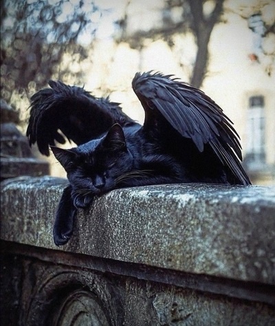 Уснул под жарким солнцем чёрный кот. Пригрел на тепленьких перилах мохнатый свой живот. И снится сон коту, что крылья у него, А в крыльях тех, широкое и черное перо. Играют чёрным блеском перья на свету. Подходят перья чёрному усатому коту. Он спит и видит крылья за спиной, И полетать мечтает в небе под луной. Волшебным и наивным был кошачий сон, Надежд пустых несбыточных навеял он. Проснётся кот, и станет всё как прежде. В кошачьей чёрненькой одежде,