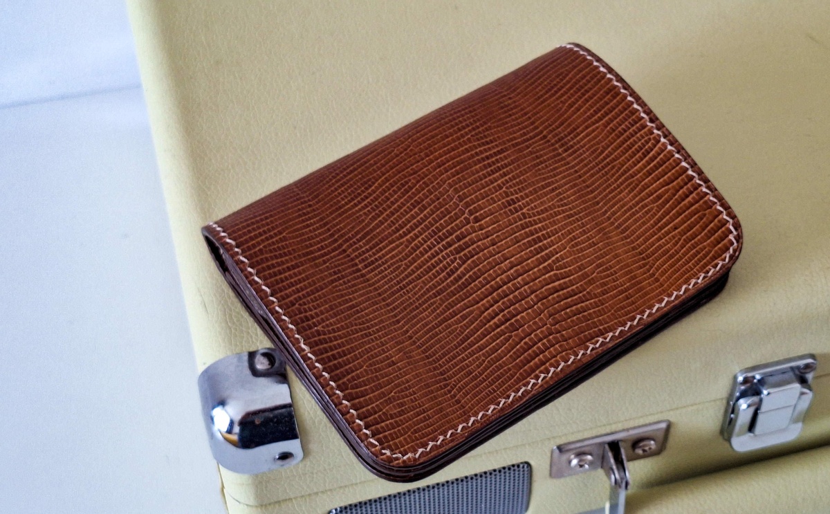 И опять моя любимая модель, итальянская с тиснением "кожа ящерицы", цвет табак. Невероятно приятная кожа, очень благородного вида, такое портмоне не стыдно достать из кармана в самом фешенебельном заведении. Пока ничейное, но если хотите, станет вашим)))