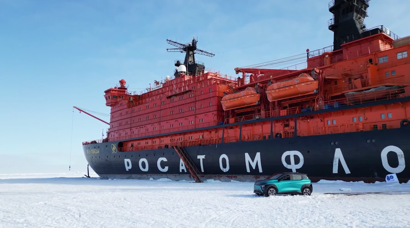 Электромобиль «Атом» может считаться первым в России автомобилем на электротяге, который добрался до Северного полюса. Это стало возможным благодаря уникальной экспедиции атомного ледокола «50 лет Победы», организованной при участии Госкорпорации «Росатом». В течение десяти дней российский электромобиль «Атом» находился на палубе атомного ледокола «50 лет Победы», преодолев около 5 тысяч километров по самым сложным широтам планеты. На протяжении всего путешествия «Атом» демонстрировал стабильную работу высоковольтной системы и емкость аккумулятора даже под воздействием соленых морских бризов и минусовых температур.В рамках экспедиции автомобиль получил возможность не только пройти климатическое тестирование, но и показать свои ходовые качества в реальных условиях Арктики. На одном из этапов пути «Атом» сошел с борта ледокола и выехал на ледовую поверхность, где инженеры проверили его управляемость и проходимость на рыхлом снегу и скользком покрытии. Эти данные станут важным материалом