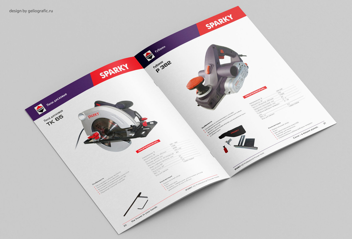 Команда Гелиографик выполнила дизайн и верстку каталога продукции электроинструментов «SPARKY». Традиционное европейское качество с 60-летним опытом производства электроинструментов, двигателей, бензиновых генераторов и вилочных погрузчиков. Компания SPARKY в течение многолетней истории сотрудничества с Россией и зарубежными странами по праву заслужила репутацию надежного партнера, а имя «Болгарка», ставшее синонимом названия наших инструментов, стало легендарным. Сегодня SPARKY одна из наиболее динамично развивающихся европейских марок электроинструмента в мире. Компания имеет ясную и диверсифицированную стратегию развития с акцентом на техническое совершенство, воплощенное в изделий и услугах. Оптимальное соотношение цены и качества, широкий ассортимент электроинструмента и оснастки – это критерии, по которым все больше профессионалов выбирают продукцию, помогающую мастерам делать свою работу быстро и ответственно. Верстка каталога на заказ: https://geliografic.ru/catalog-sparky