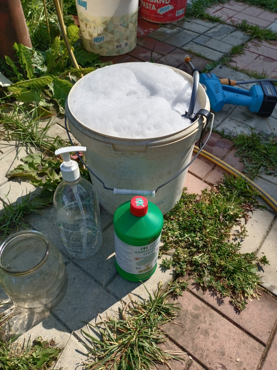 Ранее утро и мойка сада и огорода. Нашатырь + мыло. 2 ст.л. + 50мл. На 10 литров воды. И опрыскиваю всё. Всё, где могут появится всякая летающая зараза.