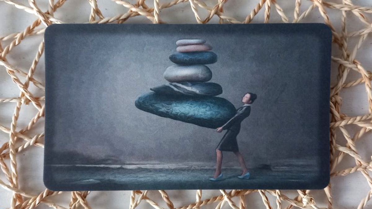 Колода PRO MONEY Перед вами женщина-предприниматель, несущая хрупкую конструкцию из камней. Эта пирамида — воплощение ваших финансовых амбиций и текущих обязательств. Каждый камень представляет: Ключевые послания: Практические рекомендации на день: Главный совет: