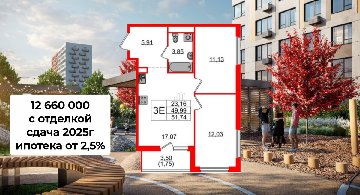 Что сейчас на рынке новостроек Санкт-Петербурга ⬇️ ⭐️ Прежде всего, семейная ипотека для родителей с ребёнком до 7 лет. Она вернулась к прежним выгодным условиям. Ипотечная ставка у некоторых застройщиков снижена аж до 2,5%. Но в основном, банки предлагают стандартную программу под 6% годовых. 📝Пример для расчета: Квартира формата 3Е, 51,74 метра за 12.660.000р с отделкой, сдача конец 2025 года. Минимальный первый взнос 20,1%=2,5 млн. Платеж составит 39900р. По-моему, прекрасный платеж для такой большой квартиры с отделкой 👍 Кроме того, в первый взнос можно включить всю сумму материнского капитала и сократить размер собственных вложений. ⭐️ Есть интересная программа для обычной ипотеки со сниженными платежами по 2000р в месяц на период строительства. Она же траншевая ипотека. Но эта программа распространяется для небольшого количества жилых комплексов. В ней к окончанию строительства необходимо сделать рефинансирование, для того чтобы платеж оставался по-прежнему комфортным. ⭐️ Н