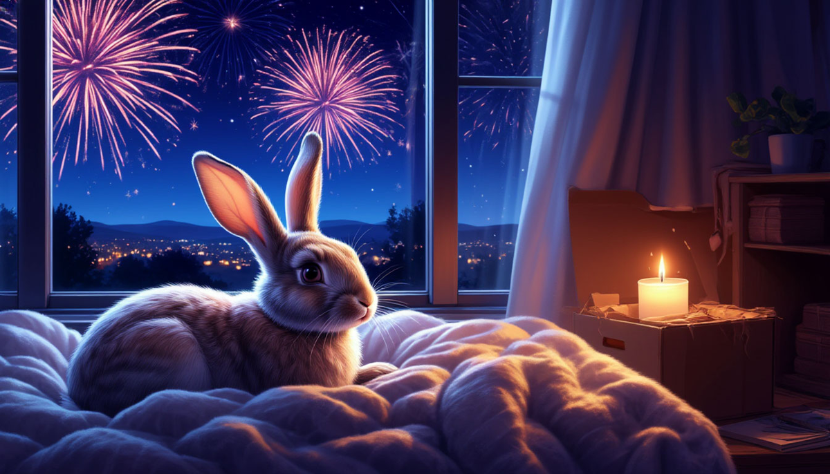 Пока все вокруг радуются салютам, фейерверкам и громким "ура", твой заяц сидит в углу, дрожит, дышит часто и вообще не понимает, что за апокалипсис начался…