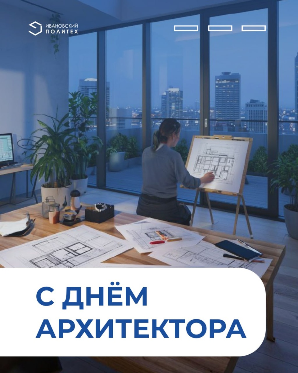 С днём архитектора! «Уважаемые преподаватели, студенты и выпускники кафедры архитектуры и урбанистики Ивановского Политеха! От всего сердца поздравляю вас с Днем архитектора – профессиональным праздником творцов, которые превращают смелые идеи в реальность, формируя облик наших городов и пространств! Архитектура – это не просто наука и искусство, это «язык эпохи», в котором сочетаются инновации, традиции и вдохновение. Ваш труд требует не только глубоких знаний, но и безграничной фантазии, ведь каждый проект – это шаг в будущее, наследие для следующих поколений. Желаю вам неиссякаемого вдохновения, смелых решений, ярких проектов и воплощения самых амбициозных замыслов! Пусть ваши работы приносят пользу людям, украшают наш мир и становятся символом гармонии и прогресса. Особые слова благодарности – нашим преподавателям – членам Союза архитекторов России Покровской М.Ю., Савельевой Н.В., Снитко А.В., а также дипломированным архитекторам Сизовой Т.А., Огурцову А.В., Лифатову В.С., Дурцево