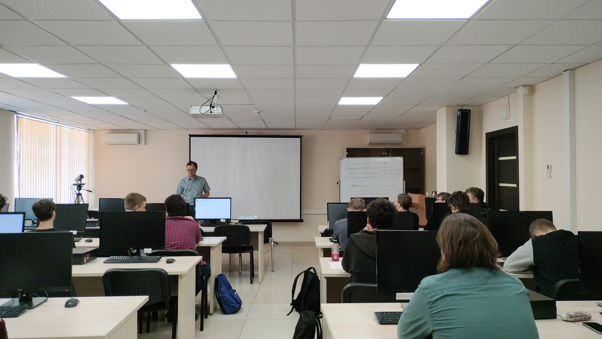 На базовой кафедре ЯрГУ имени П.Г. Демидова в НПО «Криста» началась ежегодная летняя практика студентов математического факультета. В этом году к ее прохождению приступили 30 учащихся направления «Прикладная математика и информатика». Сегодня состоялась установочная лекция. Юрий Крупин, ведущий инженер-программист-конструктор I категории НПО «Криста», рассказал ребятам о специфике работы нашей компании. В ходе практики студенты будут изучать основы Java и Git, разработки алгоритмов, работы с модульным тестированием и Junit, создания веб-приложения, познакомятся с основными программными решениями НПО «Криста», узнают о направлениях работы в ходе обучения на кафедре и о широких возможностях для профессионального развития и карьерного роста в нашей компании. Мы постараемся сделать практику максимально интересной и полезной. Опыт показывает, что через некоторое время лучшие студенты становятся нашими сотрудниками.