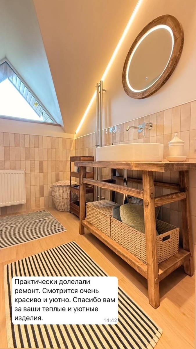 Разделяем с вами радость завершения ремонта! Спасибо за ваши отзывы и фото✨ Прекрасный лаконичный комплект мебели для ванной комнаты - тумба под раковину и круглое зеркало с подсветкой. Мы позаботились о том, чтобы сделать заказ было удобно в любую точку страны - консоли, тумбы, столы мы выполним в сборно-разборном варианте. А зеркало будет надёжно упаковано👌🏼 Пишите для заказа и расчета стоимости изделий в любых размерах!