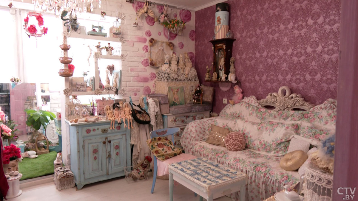 Так выглядит маленькая вселенная Аллы Алениной. Настоящий кукольный замок. Вместо обычных деревянных шкафов ярко-розовые и бирюзовые предметы роскоши. На них целое достояние. Эксклюзивные куклы ручной работы.