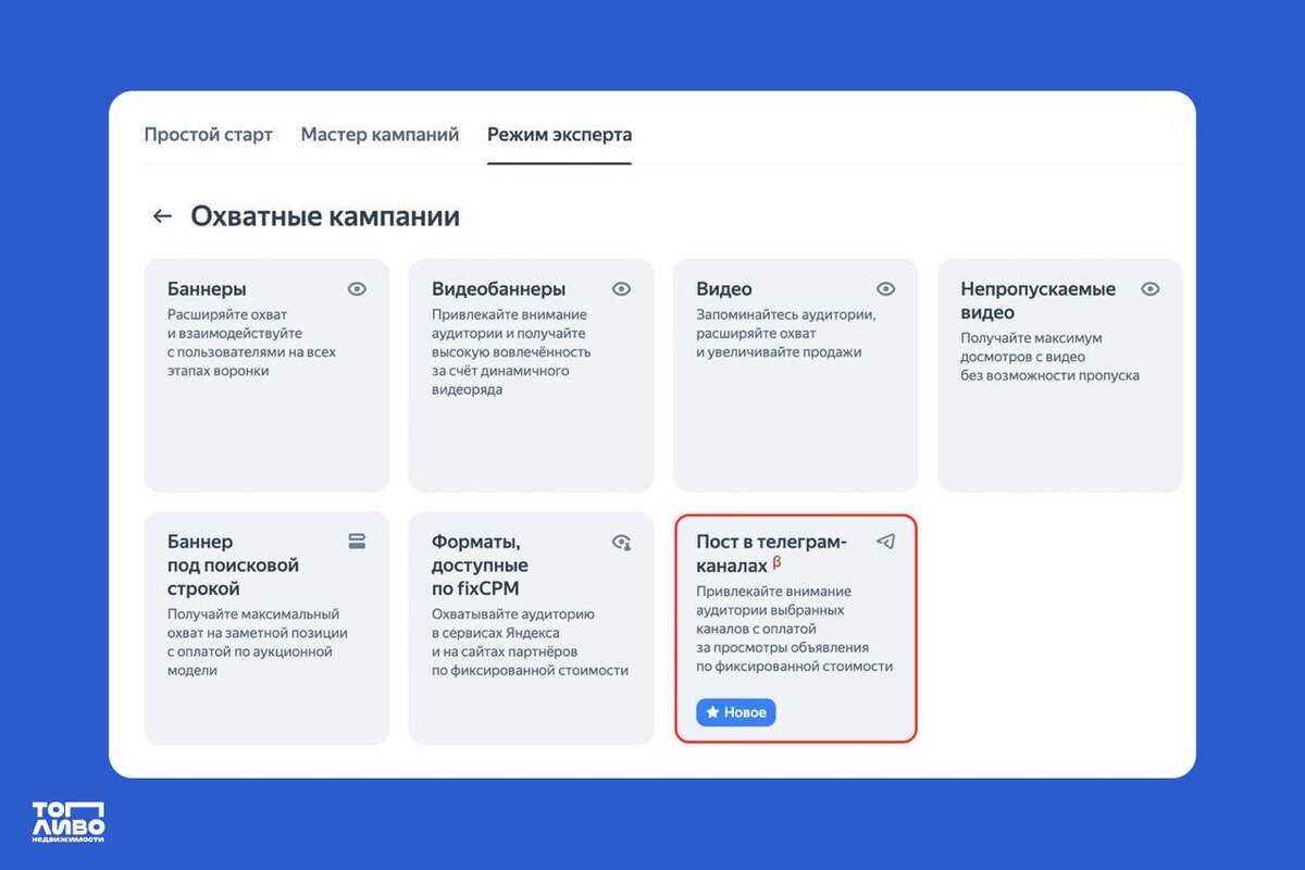 ⚡ Биржа тг-каналов от Яндекса Яндекс запускает собственную биржу тг-каналов. Ранее через Директ можно было запускать кампании по модели CPM-аукциона, теперь — размещаться в конкретных каналах. Цену за 1К просмотров задаёт владелец канала и получает оплату за фактические просмотры. Формат аукциона и прямых размещений можно использовать одновременно, но ручное размещение поста в канале происходит только после модерации. Как запустить: Я.Директ → «Охватные кампании» → «Пост в телеграм-каналах». ⌘ ⌘ ⌘ Биржа в стадии беты, но с 8 июля должна быть доступна всем рекламодателям. #новости #телега #таргет @realestatefuel