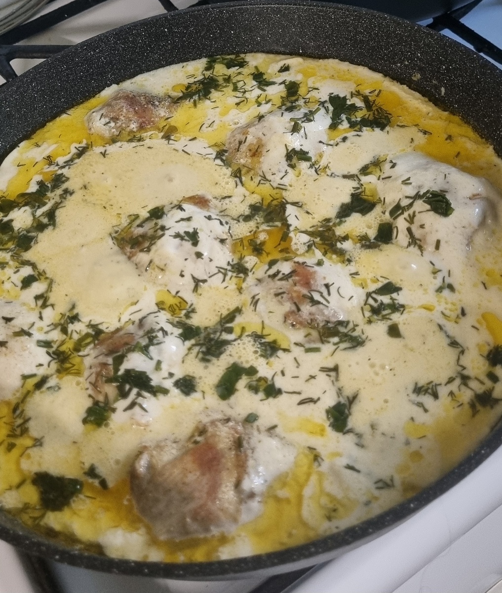 Обещала рецепт! Очень вкусно и быстро получается! Буквально полчаса и сочные ножки с великолепным соусом будут радовать ваши вкусовые сосочки рецепторы! Нам понадобится: Приготовление: Куриные ножки натираем солью, перцем и любимыми специями. На раскалённую сковороду (большого диаметра с высокими бортиками)наливаем растительное масло и выкладываем куриные ножки. Жарим на среднем огне до готовности. Пока жарится курица, можно сделать соус. В маленькую кастрюльку( или другую ёмкость, это не принципиально) выливаем сметану, добавляем 1\3 стакана кипятка( я пишу примерно, потому что сама делаю на глаз. Смотрите по консистенции, чтобы вам понравилось), добавляем любимые специи и выдавливаем туда 2 дольки чеснока. Хорошенько всё перемешиваем до однородности. Готово! Теперь соус ждёт курицу. Кстати пока есть время, можно нарезать мелко зелень 😉 Когда курица пожарится, заливаем её соусом и даём потушиться ещё 10-15 минут под закрытой крышкой. В конце посыпаем зеленью! Всё! Прекрасное блюдо