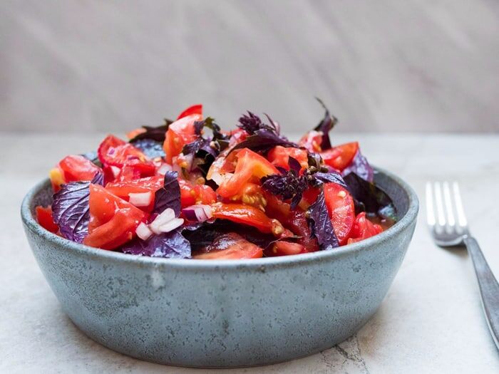 Есть ли у вас блюдо, которое мгновенно переносит в лето? Для меня это салат из помидоров с луком и базиликом. Каждый раз, когда я режу сочные, тёплые от солнца помидоры, на кухне будто становится светлее и уютнее. Аромат свежего базилика наполняет пространство, и кажется, что за окном не мегаполис, а итальянская деревня, где жизнь идёт размеренно, а еда - всегда праздник. Этот салат - воплощение лета на тарелке. Он настолько прост, что его можно приготовить за считанные минуты, но вкус - яркий, насыщенный, с нотками сладости, пряности и лёгкой остроты. Такой салат отлично подходит для семейного обеда, пикника на даче или лёгкого ужина после жаркого дня. Почему именно этот салат? В разгар сезона помидоров хочется использовать их по максимуму. Идеальные - мясистые, спелые, с тонкой кожицей и насыщенным ароматом. Такой салат не требует сложных заправок или дополнительных ингредиентов: всё внимание - на свежести и качестве продуктов. Для меня этот рецепт - не только про вкус, но и про восп