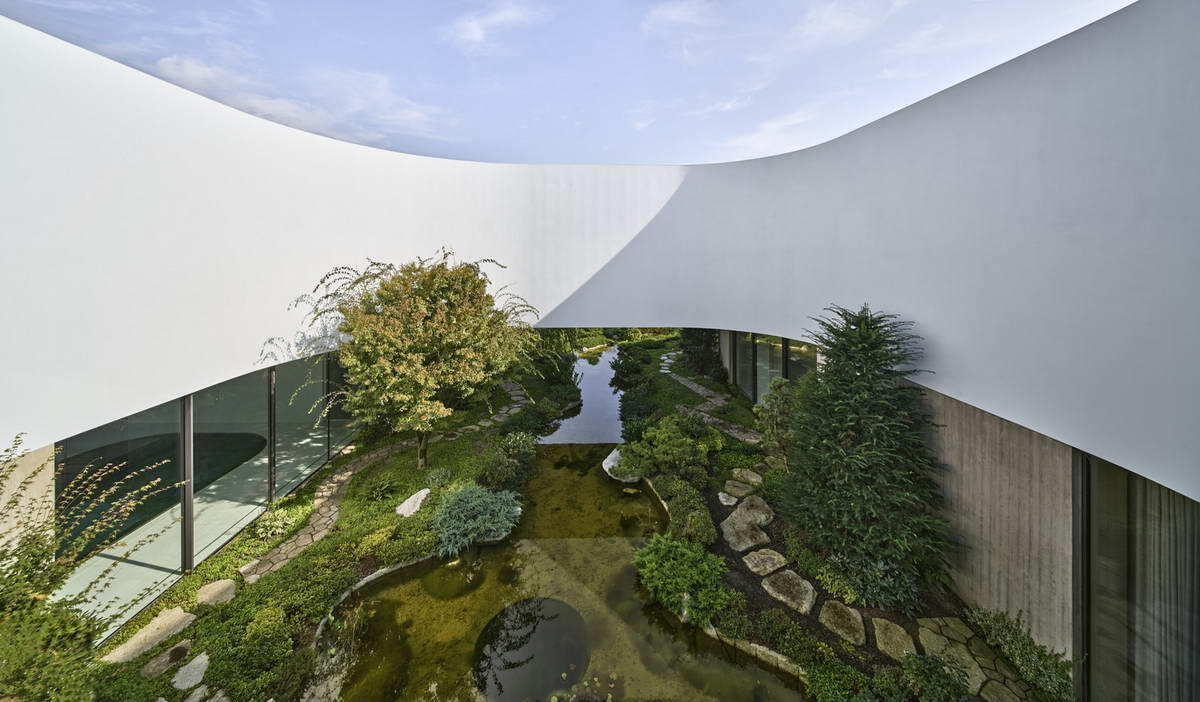 Особняк с бассейном, озером, садом и зелёной крышей и ещё 3 современных дома по понедельникам