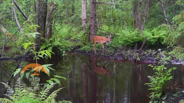 Ловкую косулю и хитрую лису запечатлели у лесной реки под Выборгом