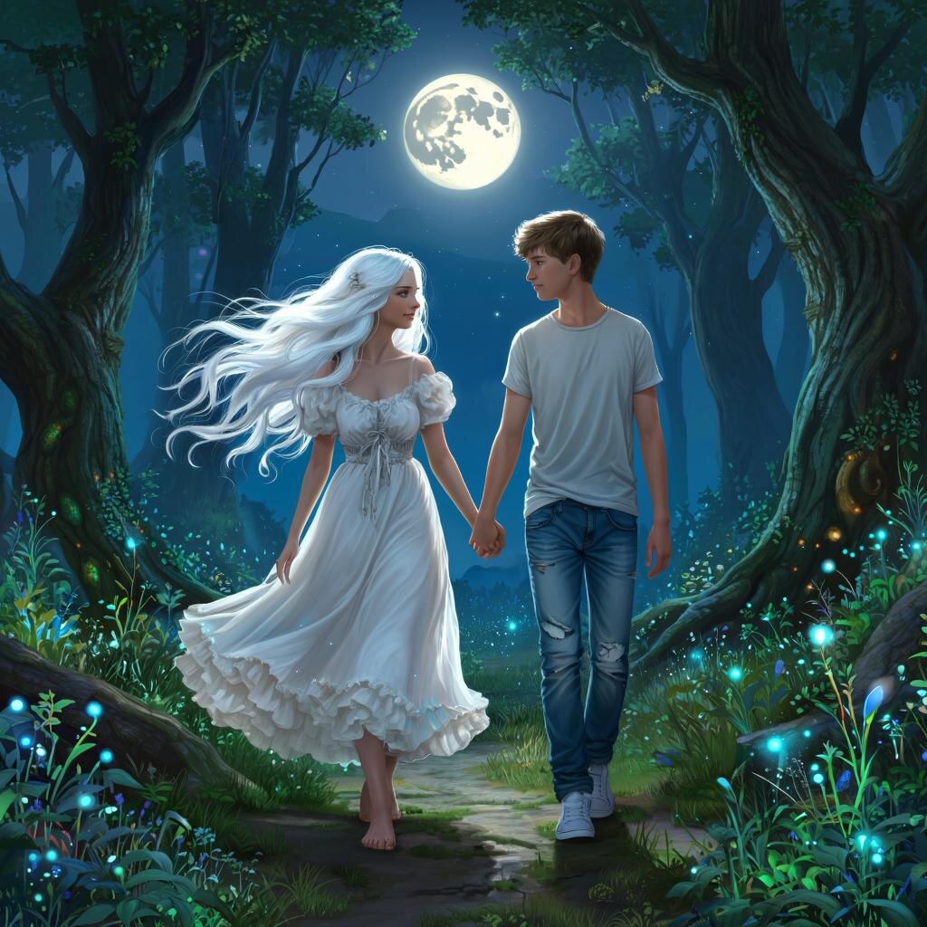 Лес встретил нас настороженной тишиной, нарушаемой лишь шепотом листьев и треском сучьев под ногами. Луна, спрятанная за рваными клочьями туч, бросала причудливые тени, превращая каждый пень в чудовище. Мари крепко сжимала мою руку, и я чувствовал, как дрожит её ладонь.