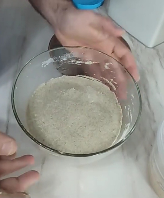 Желательно с вечера, к 30 гр ржаной закваски 100% влажности (если она из холодильника, то обязательно дайте ей согреться пару часов при комнатной температуре)
