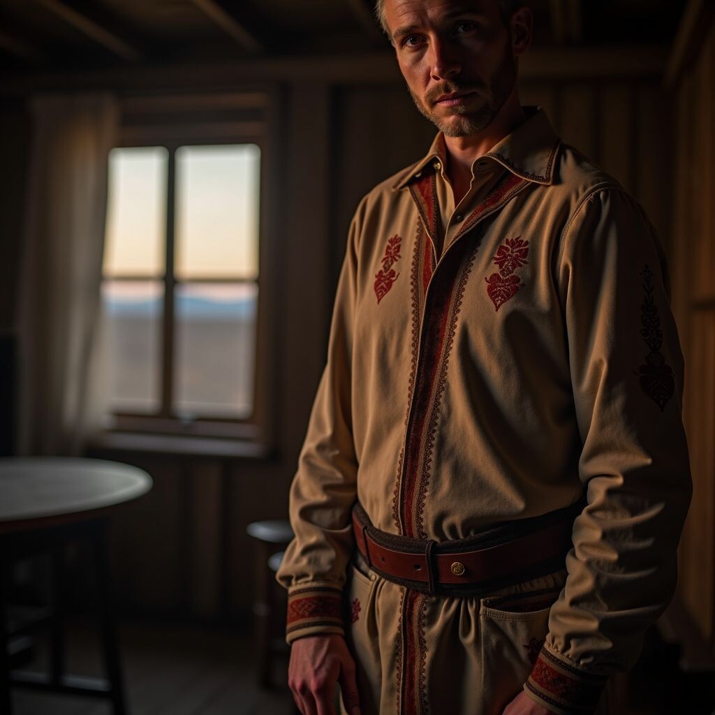 А вот тут начинается самое интересное. Каждый узор на рубахе — это не просто "красиво поверх нацеплено". Это целая система защиты! Вышивка на вороте — чтобы злые духи в душу не залезли. Узоры на рукавах — чтобы силу в руках держать. Ромбы да крестики по подолу — на плодородие и благополучие.