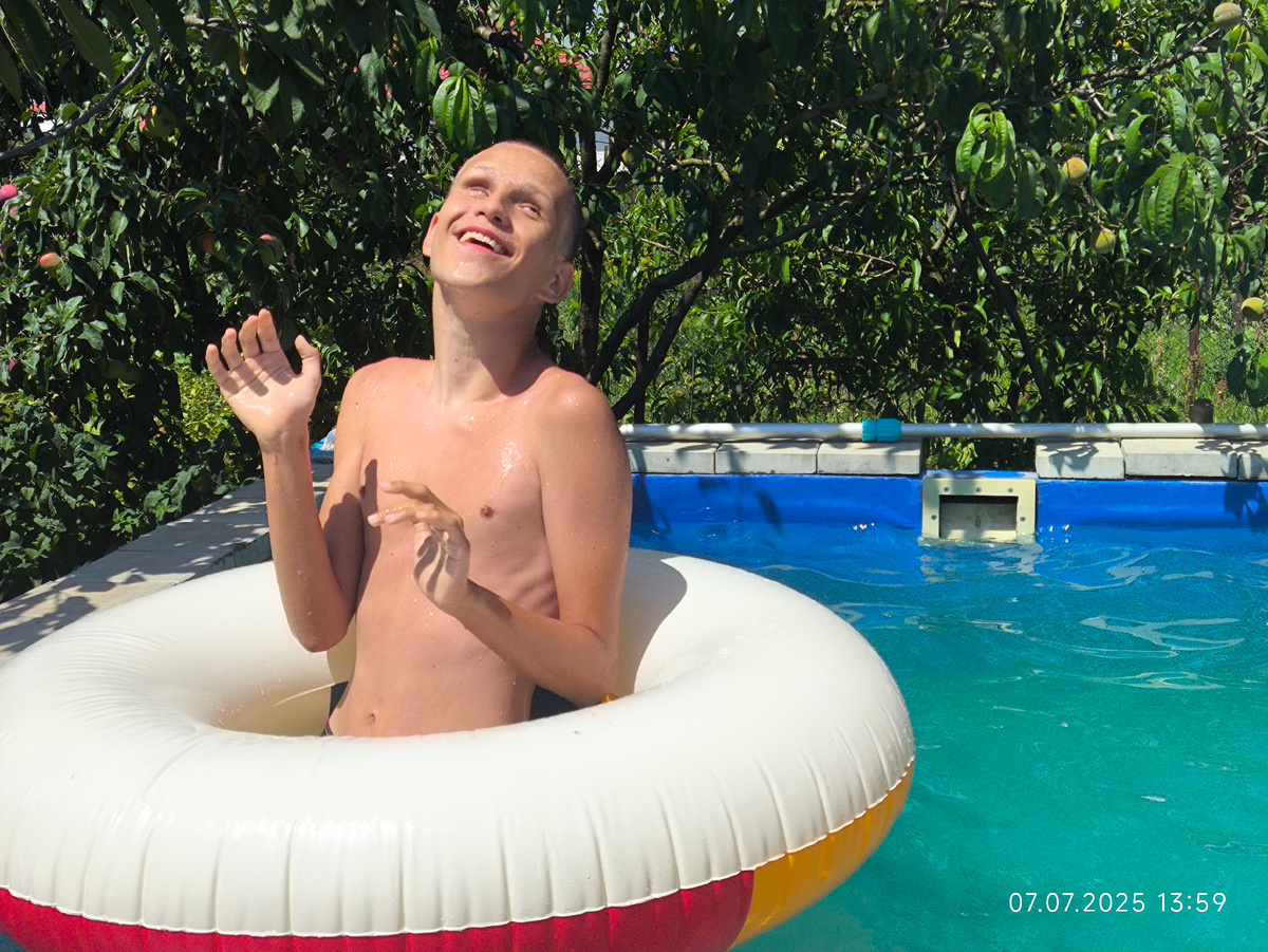 Сейчас никто не бегает по улицам с брызгалками. Все важные и сухие. И купальный сезон уже никто у датам не привязывает. А мы с Гошкой сегодня плещемся в бассейне и громко кричим! У нас праздник!