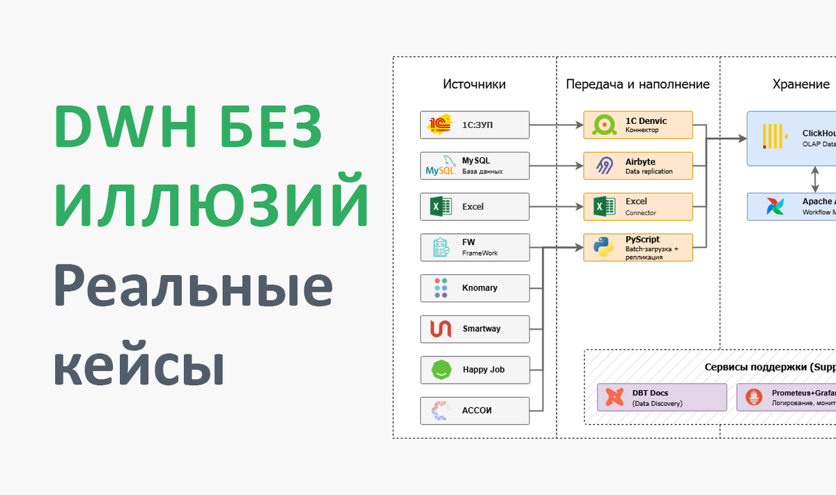Каждый DWH-проект уникален и требует не только своего набора инструментов, но и индивидуального подхода к клиенту, взаимодействия между командами, нестандартных решений.