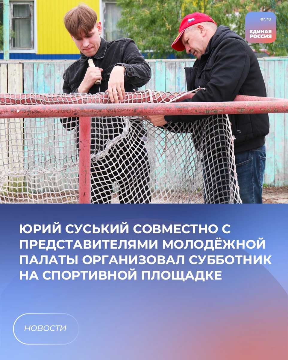 Руководителем фракции «Единая Россия» в Совете городского округа «Город Нарьян-Мар» Юрием Суським организован субботник на площадке, расположенной между домами 17А и 19А по улице Первомайской По просьбе юных спортсменов, совместно с представителями молодёжной палаты, активисты собрали мусор, подремонтировали коробку и установили сети на футбольные ворота. Фото: Совет городского округа «Город Нарьян-Мар» #ЕдинаяРоссия #ГородскаяСреда