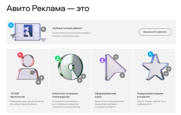 Основная фишка нового кабинета - запуск баннерной рекламы через кабинет Авито, которая может вести не только на профиль компании на площадке, но и трафик на сайт рекламодателя.