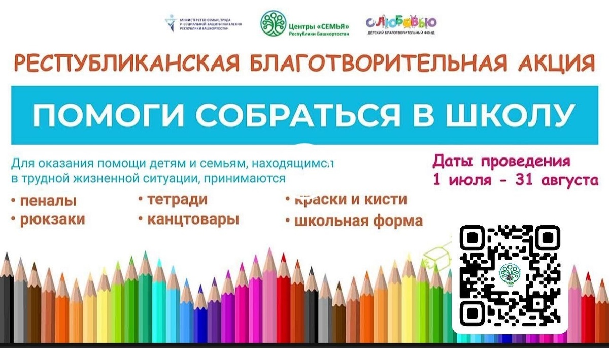 С 1 июля по 1 сентября по всей Башкирии проходит 15-й марафон добра — благотворительная акция «Помоги собраться в школу». Она помогает детям из семей, находящихся в сложной жизненной ситуации, встретить новый учебный год уверенно и с улыбкой.