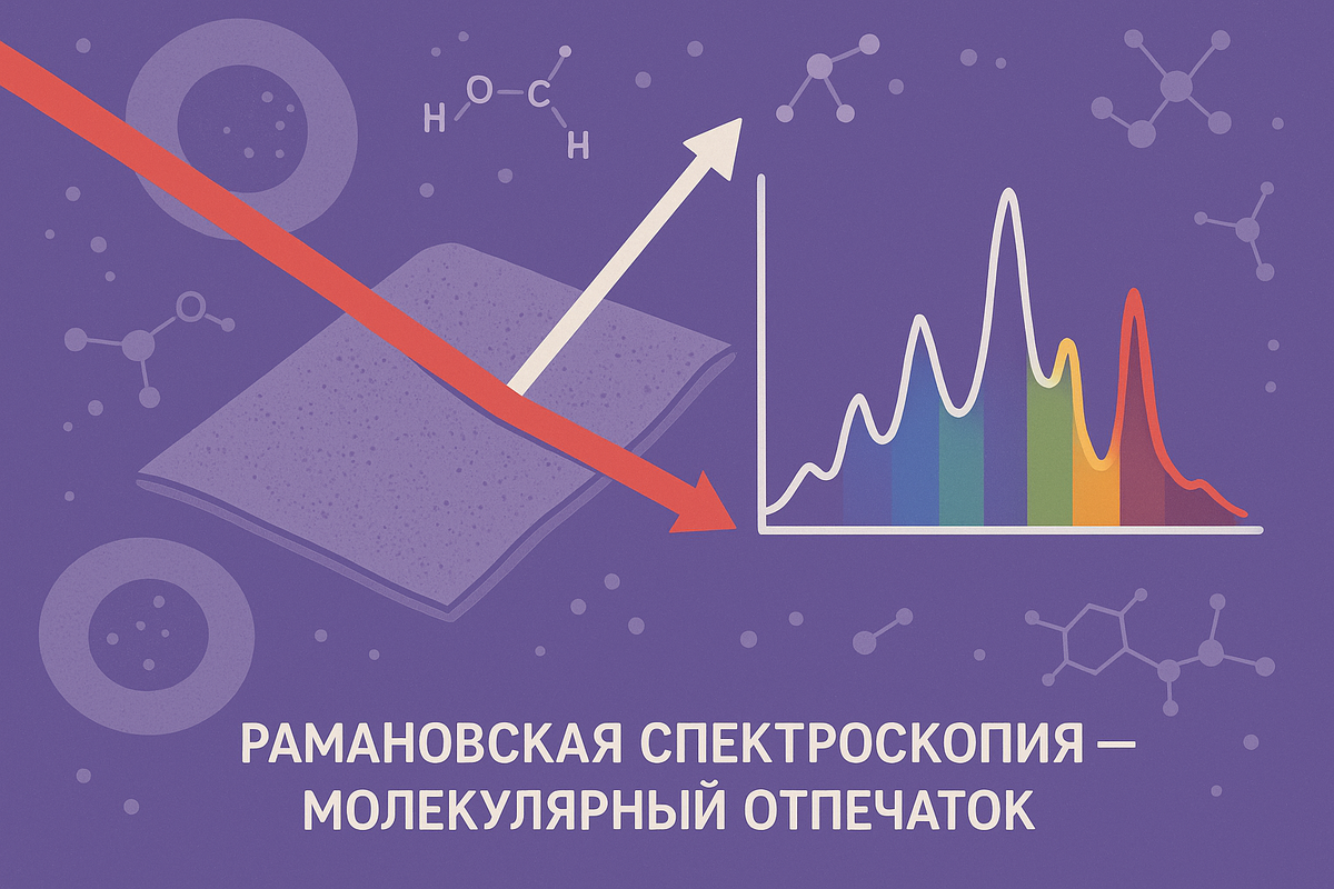 Рамановская спектроскопия — это метод, который позволяет "снять отпечаток пальца" с молекулы. Когда лазерный луч проходит через ткань или вещество, он рассеивается, и часть света меняет свою частоту. По этим изменениям можно определить, из каких молекул состоит исследуемый объект. Главная идея: