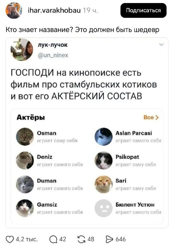 Фильм с топовым кастингом найден — на экране только котики