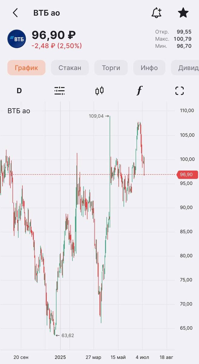 Философы говорят: «Нельзя войти в одну и туже реку дважды…» Но наш народ умудрился втарить 3 раза ВТБ выше 100 за последние полгода…И каждый раз кто то массированно там продавал толпе… В кейсе ВТБ начало выплаты дивидендов конечно выглядит позитивно… Но, что я вижу как трейдер: Когда рынок в апреле был на этих уровнях ВТБ стоил примерно 70 рублей… То есть сейчас БЕЗ ДИВИДЕНДОВ он примерно там где и должен быть, но теперь впереди есть «размытие» доп эмиссией… Честно говоря мне без разницы сколько стоит ВТБ - я готов его торговать и по 200 рублей…Но смущает тот кто много продавал 3 раза выше 100 и ему эта цена показалась привлекательной на выход! Я давно говорю, что этот кейс оч опасен и в один момент мне показалось, что я ошибаюсь и в этот раз все будет иначе…Но нет ВСЕ КАК ВСЕГДА… Ждем див гэпа, там будет интересно!