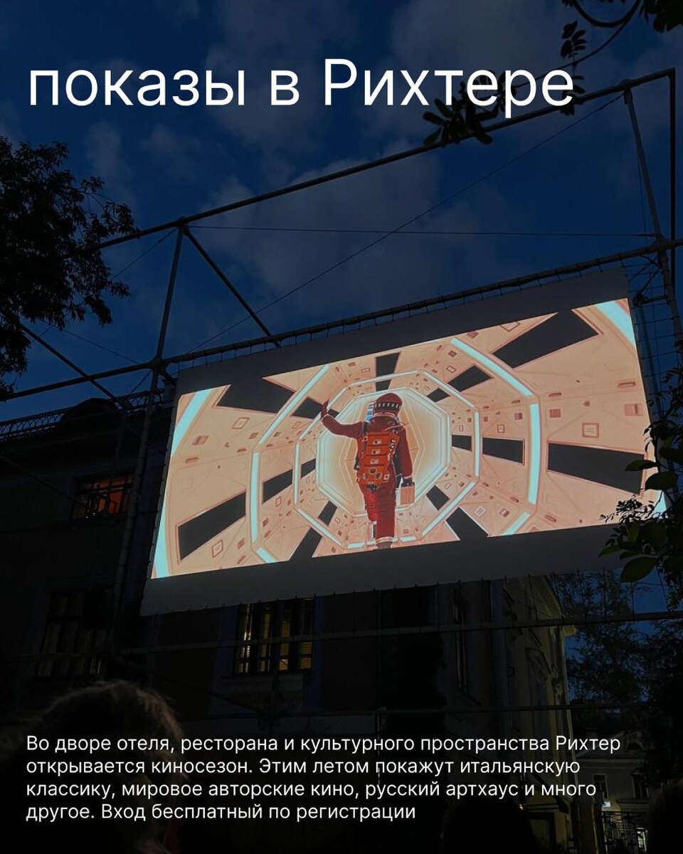 #киноподборка летних кинотеатров Москвы 📍показы в Рихтере 📍summer cinema by KION 📍DFF summer cinema 📍москино Музеон 📍Stella di Mosca Summer Cinema 📍Сфера X5 в Парке Горького 📍кинотеатр Okko на ВДНХ 📍остров Мечты а еще: кинопаркинг в Три Вокзала.Депо, пять открытых кинотеатров от проекта «лето в Москве», показы в РУФ и Арт/Крыша от проекта Каро/Арт