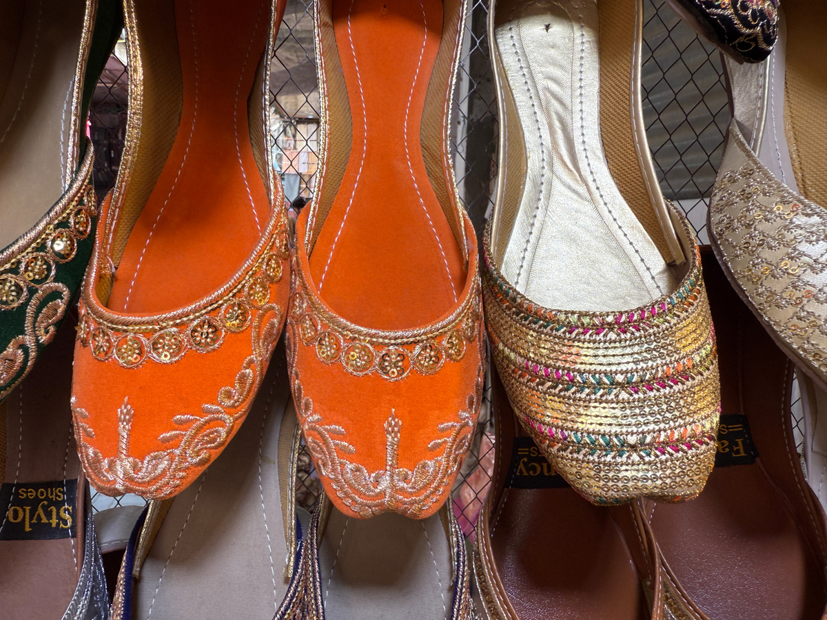 Первое, что, конечно, бросается в глаза, это то, что в отделах, где продают женские платья, обувь, украшения, - сидят одни мужчины. Даже в эту сферу торговли не пускают работать женщин, хотя это было бы очень логично. Ярких пестрых платьев здесь очень много, но ходят в таком по улице не так часто, видимо, многая такая одежда - для парадных случаев: в гости, на официальный визит, на свадьбу. Как видим, манекены в исламе не запрещены, они используются на пакистанских базарах.