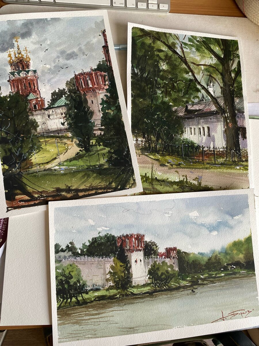Новодевичий монастырь. Москва Фотки в комментах #акварель #пейзаж #пленэр #Москва