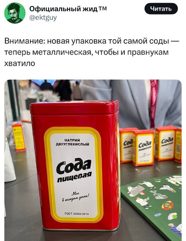 В Твиттере засветили свежую металлическую банку Соды — и комменты тут же прозвали её самой модной пепельницей двора. Всё, ребят, классика ушла в прошлое. Встречаем новую эру стильных баночек! Подробнее: https://hard-tm.su/threads/100348/ 🕹HARD-TM — Подписаться