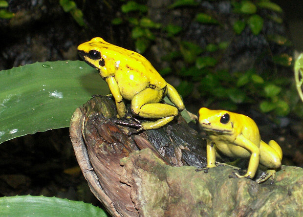 Устойчивость ужасных листолазов к собственному яду обеспечила единичная мутация. Биологи из Государственного университета Нью-Йорка в Онеонте выяснили, как одно из самых ядовитых животных на Земле, лягушка ужасный листолаз (Phyllobates terribilis) не умирает от собственного яда. Оказалось, все дело в единственной аминокислотной замене в белке, который необратимо связывается с ядом. Исследование опубликовано в Proceedings of the National Academy of Sciences. Ужасный листолаз (Phyllobates terribilis)обитает в тропических лесах на тихоокеанском побережье Колумбии. На коже этой маленькой лягушки есть железы, выделяющие сильный яд — батрахотоксин — обладающий кардио- и нейротоксичным действием. Полулетальная доза яда для мышей равна двум микрограммам на килограмм. Одна лягушка, в среднем, несет на себе около одного миллиграмма яда — этого достаточно, чтобы отравить 10000 мышей. Батрахотоксин необратимо связывается с натриевыми каналами в клеточных мембранах, которые открываются и закрывают