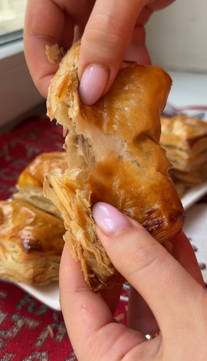 Нам понадобится: ~ Фасоль сух. 100 гр / консерв. одна банка ~ Лук 1 шт. ~ Сыр 70 гр. ~ Слоеное тесто 2 листа ~ Соль, чёрный перец, хмели-сунели по вкусу ~ Желток 1 шт. + молоко 1 ст.л. для смазывания Приготовление: Если у вас фасоль сухая как у меня, то ее нужно замочить на несколько часов, а лучше на ночь и затем сварить до готовности. Можно взять консервированную фасоль. Готовую фасоль нужно растолочь толкушкой. Лук обжариваем до золотистости и добавляем к фасоли. Солим, перчим, добавляем специи и натертый сыр. Перемешиваем. Слоеное тесто раскатываем немного и разрезаем на 4 квадрата. Кладем в центр начинку из фасоли и заворачиваем тесто пополам, формируя прямоугольник. Края слегка приминаем, но сильно не защипываем, чтобы при выпекании красиво расслоилось. Смазываем желтком смешанным с молоком и отправляем в духовку при 180 градусах на 12-15 минут. И вуаля, красивые, сытные и очень вкусные лобиани готовы!