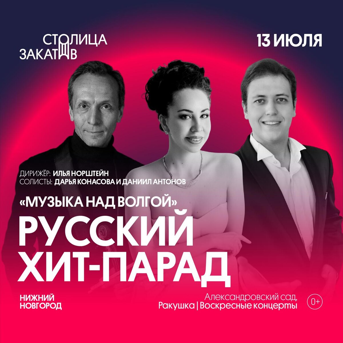 Симфонические концерты в Александровском саду — на очереди «Русский хит-парад»🎷 13 июля можно услышать зажигательные пляски, марши, вальсы отечественных композиторов, написанные для сценических произведений и фильмов. Прозвучат фрагменты к пьесе Островского «Снегурочка» Римского-Корсакова и Чайковского, музыка Хачатуряна к драме Лермонтова «Маскарад», вальс Cвиридова к Пушкинской «Метели», и произведения Дунаевского к фильмам «Цирк», «Кубанские казаки», «Веселые ребята» и другим. Солисты — Дарья Конасова и Даниил Антонов. За дирижёрским пультом оркестра — дипломант международных конкурсов, дирижер Московского театра «Новая опера» Илья Норштейн. 👉 Вход на воскресные концерты бесплатный 👉 Регистрация 😄 Мероприятия Нижний Новгород. Я местный!