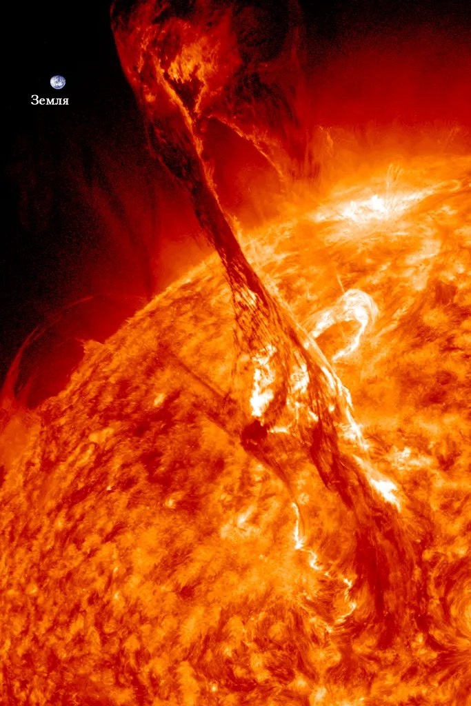 Гигантское извержение коронального выброса массы на Солнце. Земля на фото для масштаба. 🤯
