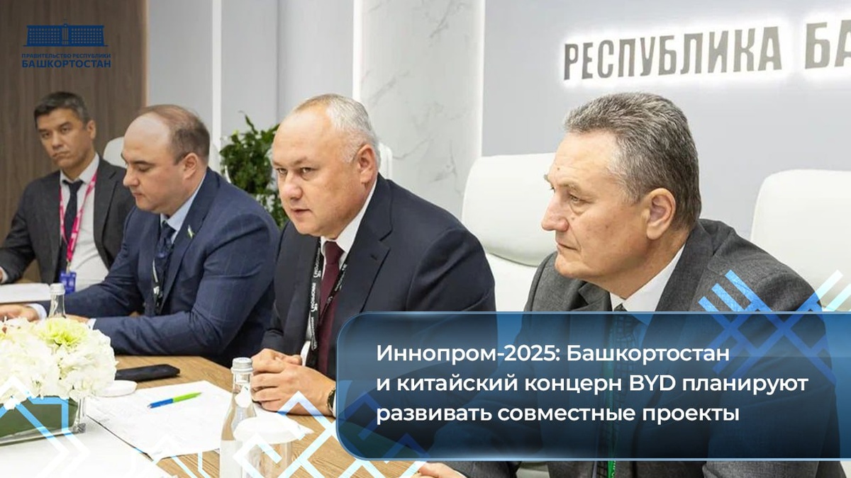 Иннопром-2025: Башкортостан и китайский концерн BYD планируют развивать совместные проекты ➡️ В частности — проекты в области автомобилестроения на территории республики. Об этом стало известно в ходе встречи представителей делегации Башкортостана с компанией из КНР. — Башкортостан находится в самом центре России и является лидером страны по реализации промышленной политики. У нас выпускаются авиационные двигатели, электробусы, автобусы, автобетоновозы, вертолеты, также другая специализированная техника и комплектующие. Также мы лидируем по производству химической промышленности, топлива. Сегодня мы готовы предложить нашим партнерам из Китая благоприятные условия для развития совместных проектов на территории Башкортостана, — рассказал заместитель Премьер-министра Правительства Республики Башкортостан – министр промышленности, энергетики и инноваций Республики Башкортостан Александр Шельдяев. 💬 По итогам встречи стороны договорились о продолжении деловых контактов, а также наметили