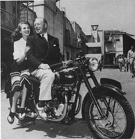 Не совсем понятно, почему мотоцикл должен был бросить вызов Голливуду, ну да ладно. Если попытаться найти в её биографии эпизоды, в которых она бы описывала свои поездки на Triumph, то можно потратить время впустую. Никто и никогда не упоминал о том, по крайней мере при её жизни, что она владела двухколесной техникой.