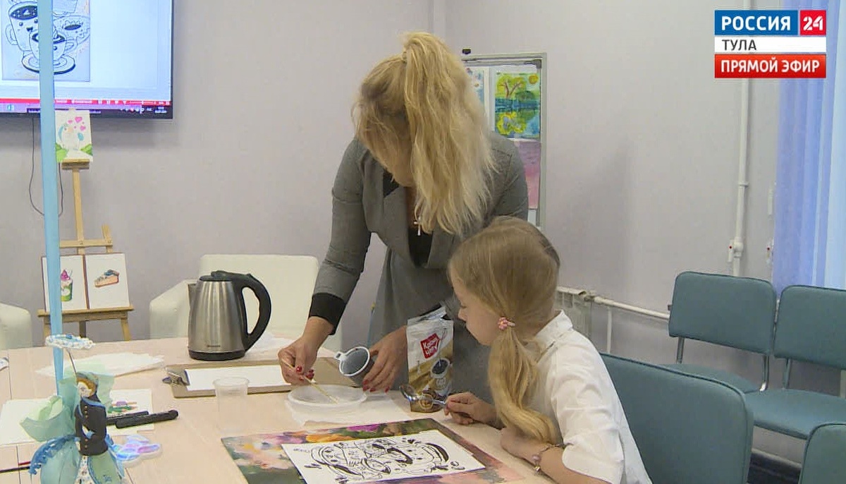 Линия за линией, аккуратно прорисовываем каждую деталь. Дети могут сделать это с помощью переводной бумаги. Для взрослых задача чуть сложнее – рисовать приходится самим. После того как эскиз готов, приступаем к созданию кофейного шедевра. Светлана Троицкая, специалист по работе с семьёй МФЦ «Мой семейный центр»: Кофе сразу благотворно взаимодействует на все органы чувств. Это визуально приятно взгляду, то есть рисование кофе, какао, корицы, вот этот коричневый цвет умиротворяет, успокаивает, включает такое состояние медитативное, когда отключается анализирующее левое полушарие и подключается творческое, правое. Кроме того, конечно же, здесь задействовано обоняние. Любовь Евтушенко – мама 7 детей. Рисование одно из любимых занятий. На арт-терапию в “Мой семейный центр” семья ходит каждую среду. Мастер-классы ждут с нетерпением. Любовь Евтушенко, многодетная мама: Приходим сюда, чтобы отвлечься от домашней суеты, расслабиться, отдохнуть. В общем, нам очень нравится рисовать. Дети очень с