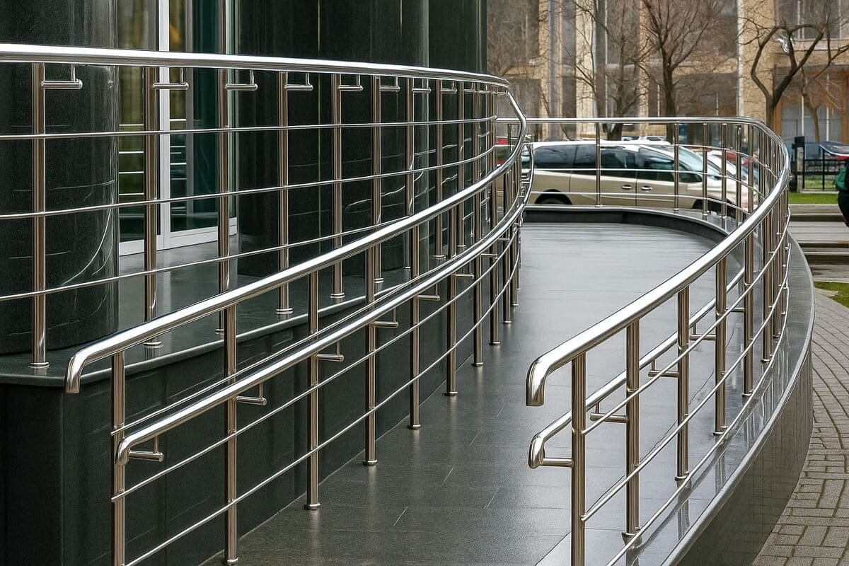 - Перила из нержавеющей стали. Для лестниц, входных групп, санитарных зон. Обеспечивают дополнительную поддержку и безопасность. Идеальны для общественных и медицинских учреждений.