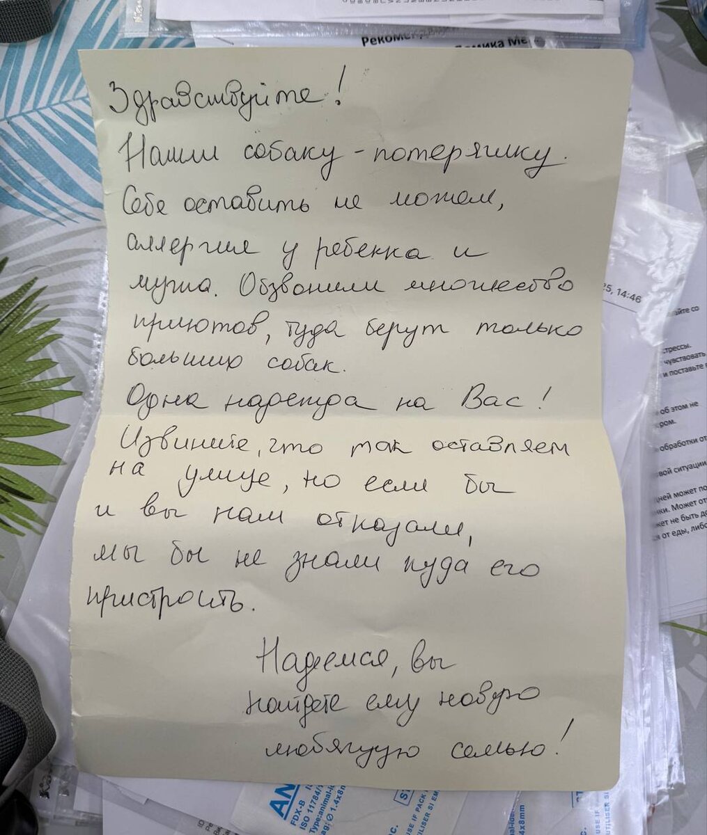 Ещё и записку приложили, мол, «нашли собаку, на вас одна надежда, нам везде отказали»🤦🏻♀️